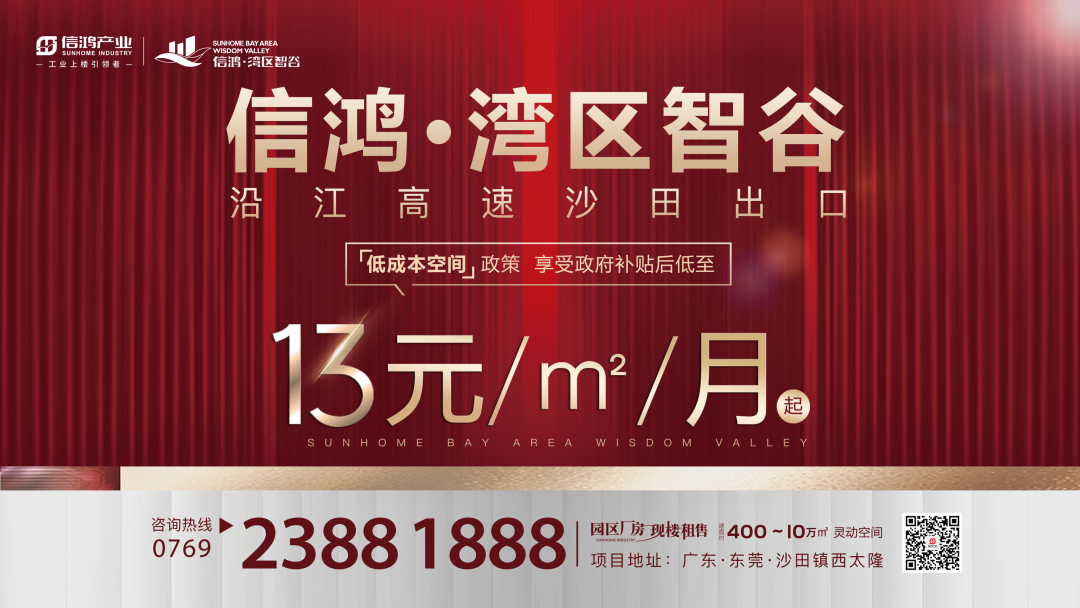 广东信鸿产业集团有限公司是一家集实业、地产、产业于一体的大型集团公司,总部位于东莞南城。集团拥有30年的制造业经验,20年的房地产开发经验和多年的产业园开发经验。公司以“工业上楼引领者”作为发展战略,专注于打造高品质产业园区。截止目前,集团拥有松湖智谷(寮步)、中以国际科技合作产业园(松山湖)、信鸿·湾区智谷(沙田)、信鸿·常平智谷、欧菲光·湾区科创中心(滨海湾新区)等多个园区,已开发和在开发产业园面积500万㎡。