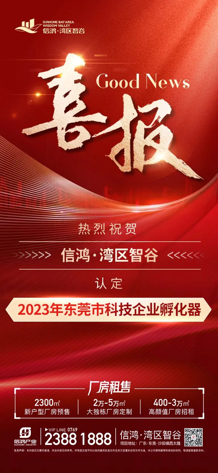 11月3日,《东莞市科技局关于公布2023年度东莞市科技企业孵化载体名单的通知》发布,信鸿·湾区智谷获科技企业加速器认定。